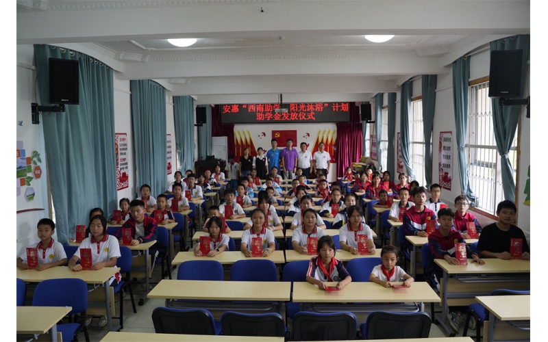 活動上,安惠公司為麻尾小學、獨山四中捐贈洗浴物資,為麻尾小學校舍捐贈1臺空氣能熱水器。儀式后, 一場簡樸溫馨的助學金發(fā)放儀式在麻尾小學多功能廳開啟,安惠江海志愿者將助學金分發(fā)到受助學生手中,受資助的學生們紛紛致謝,表示將珍惜機會,努力學習,保持奮發(fā)向上的精神,以優(yōu)異的成績感恩父母、造福家鄉(xiāng)、回報社會。