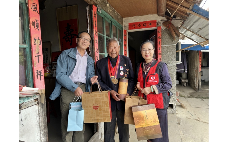 慰問團一行抵達石超老人家中,為老人送上精心準備的安惠健康飲品,并圍坐在老人身旁,關切詢問老人的身體狀況和生活情況。雖已至期頤之年,石超老人精神矍鑠,見到前來慰問的團員青年,臉上洋溢著慈祥的笑容。在輕松溫馨的氛圍中,老人緩緩打開記憶的閘門,深情講述起那段波瀾壯闊的革命歲月。